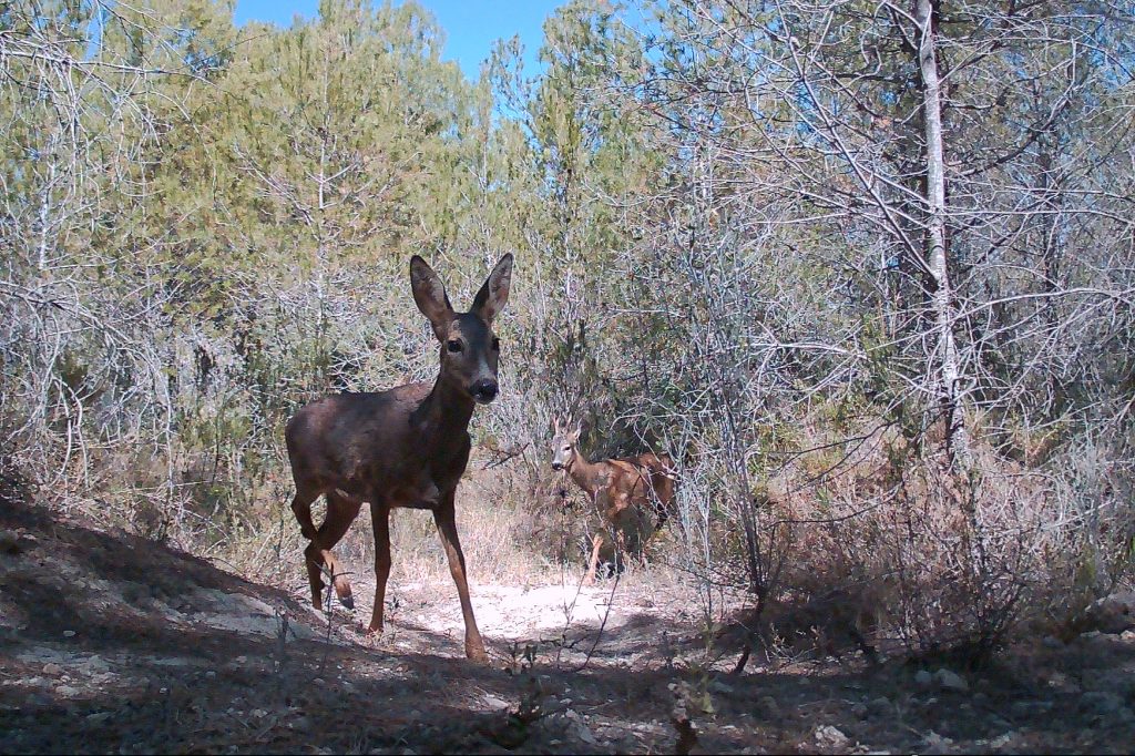El corzo es un animal de hábitos boscosos que suele vivir en solitario (Foto 1) o en pareja (Foto 2). Es de pequeño tamaño (25 Kg. aproximadamente) y se alimenta principalmente de brotes tiernos, hojas de arbustos y de árboles bajos y bayas.