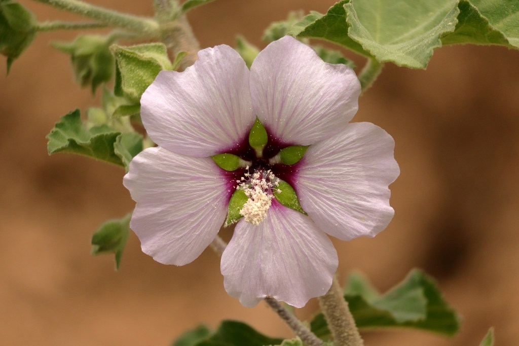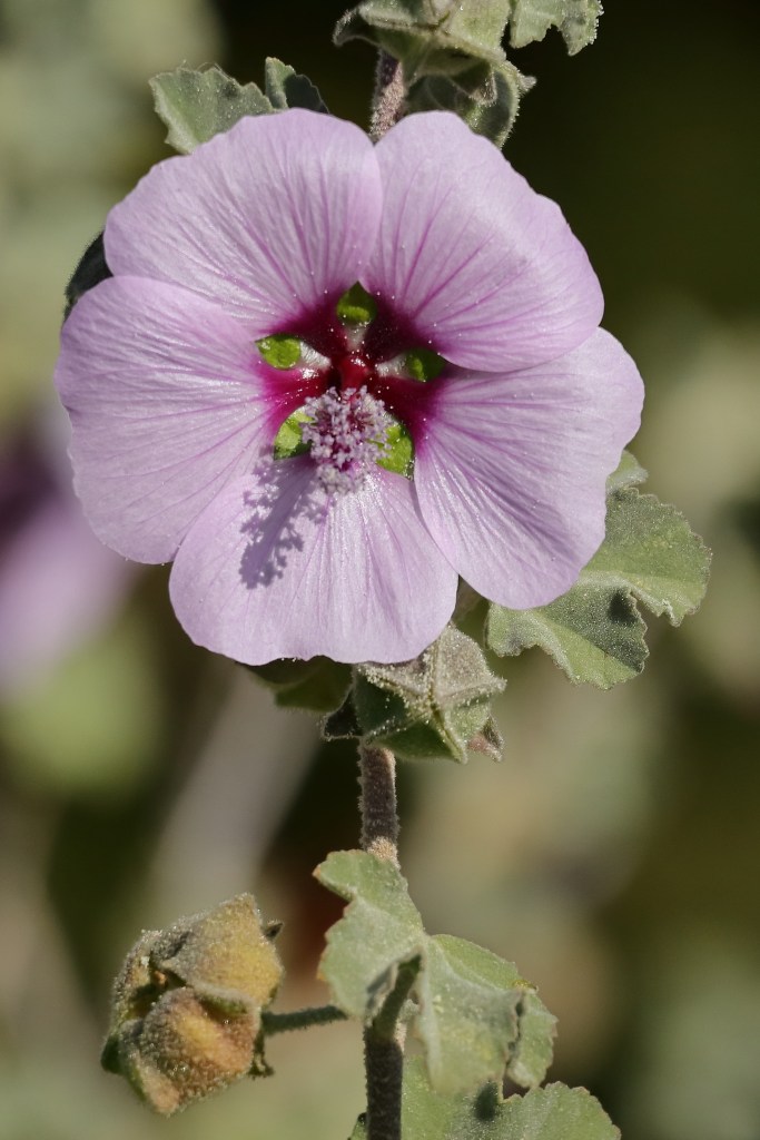 Este arbusto puede encontrarse en zonas litorales o de influencia marítima y prefiere lugares calientes con mucha luz. Tiene las hojas y ramas densamente cubiertas de una capa de pelos que cubre toda su superficie y que le dan un color gris blanquecino; una característica que no tiene ninguna otra malvácea. Las flores son de un rosa pálido, característica que también es propia de la subovata. Florece desde el invierno y durante la primavera.
