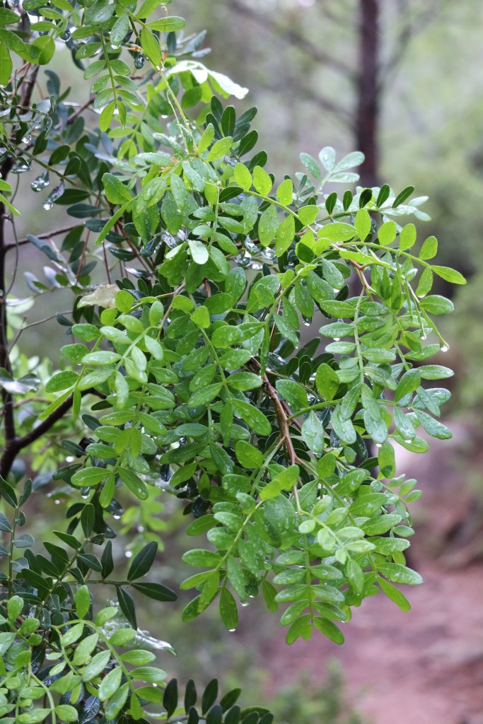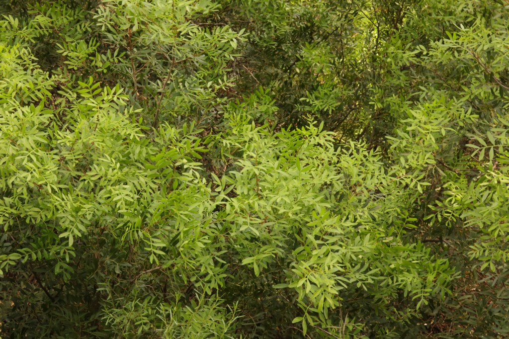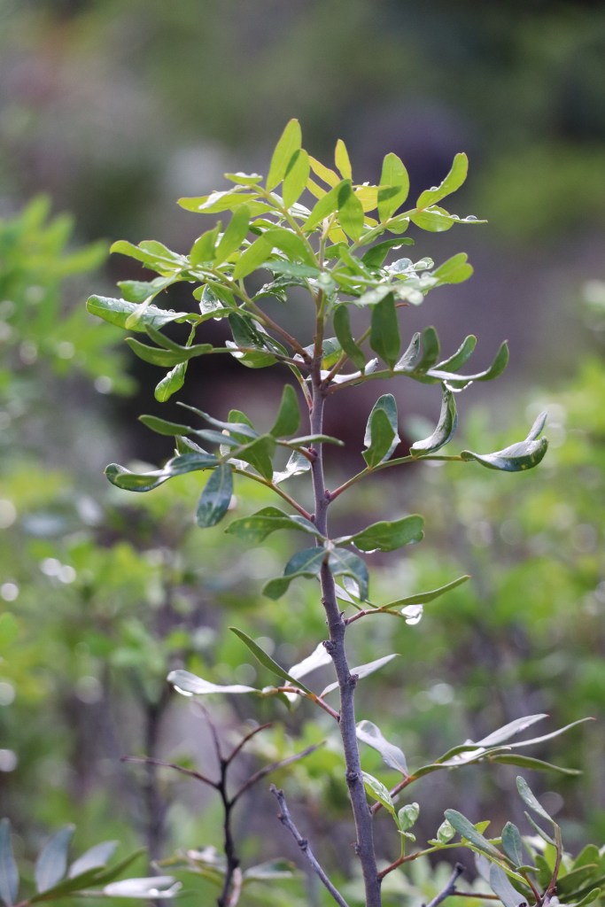El lentisco es un arbusto de hoja compuesta que permanece siempre verde. Este arbusto es muy típico del área mediterránea y puede llegar a medir hasta 5 metros de altura.